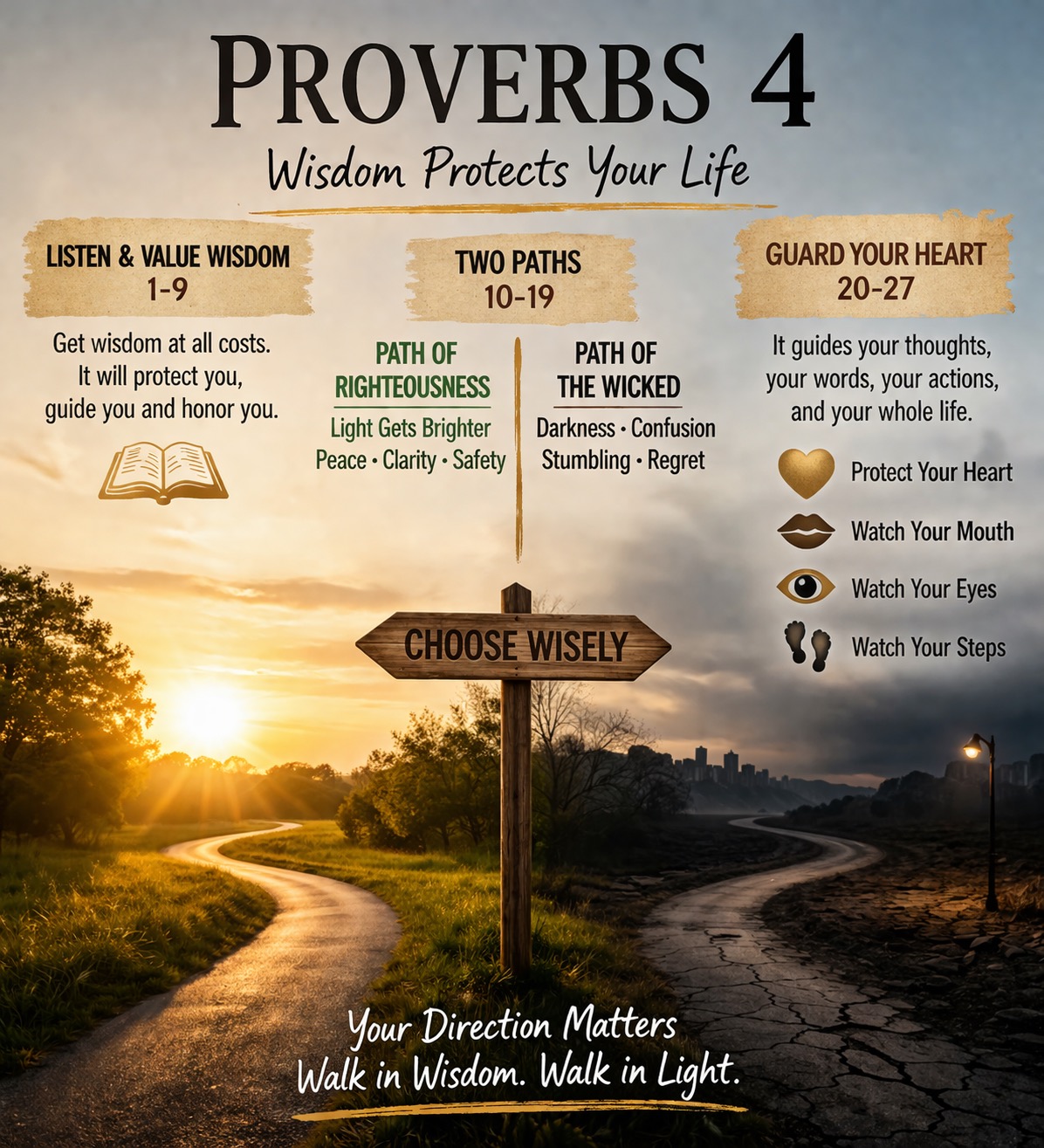 Proverbs 4 is a powerful chapter about wisdom, guidance, and the direction of your life. It’s written as a father speaking to his children—very likely King Solomon passing on what he learned from his father King David.