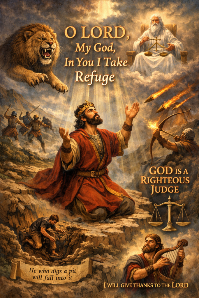 Psalm 7 is a powerful cry from King David when he is being falsely accused and pursued by enemies. It is both a prayer for deliverance and a declaration that God is a righteous judge.